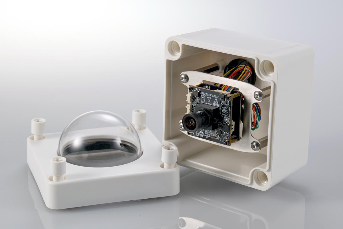 The set includes not only the housing case itself, but also mounting components and cables, enabling quick installation once the camera is integrated.