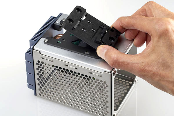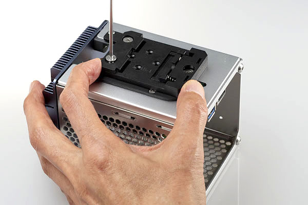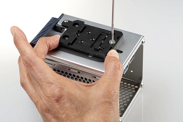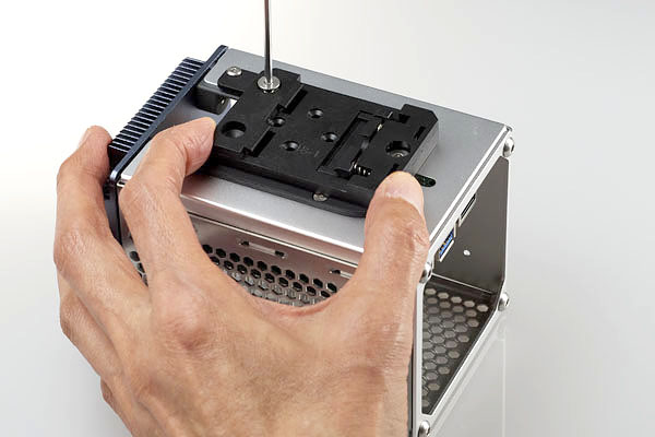 This mounting part allows you to attach a honeycomb case to a DIN rail.