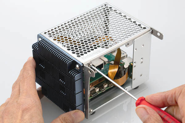 By simply tilting the display upward, the Raspberry Pi board can be accessed, providing excellent maintainability and expandability.