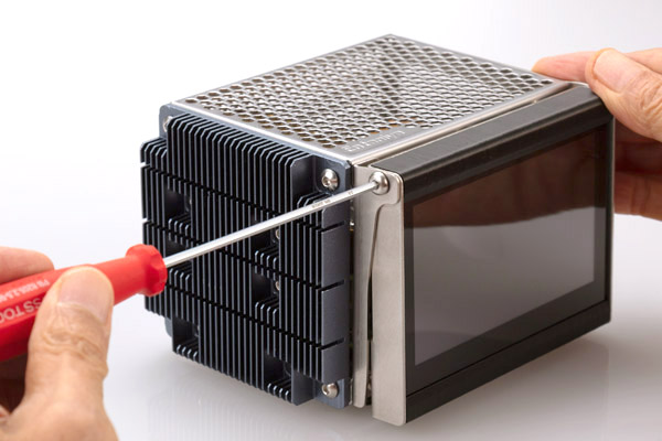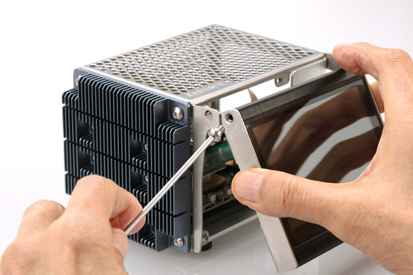 While maintaining high rigidity and excellent heat dissipation through its honeycomb structure, the flip-up front display provides superior visibility and operability.