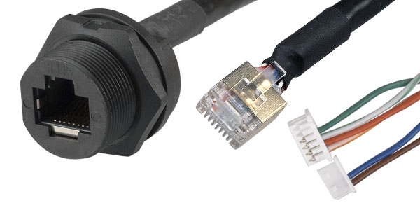全天候型カメラハウジングやキューブケース内でカメラと接続するための各種ケーブルです。