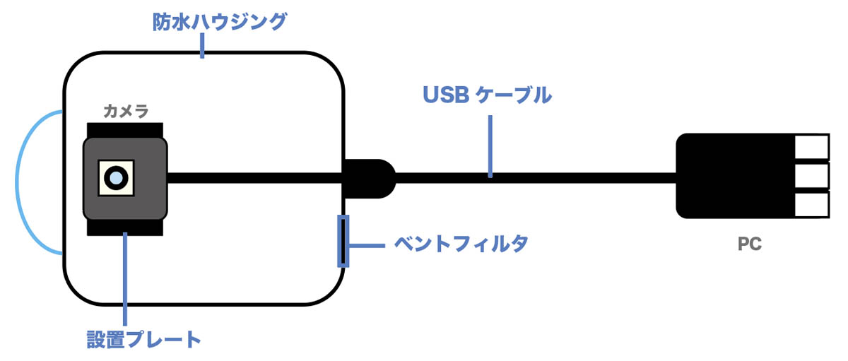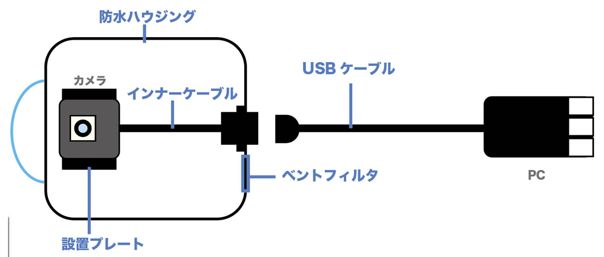 | 同梱物 | ハウジング本体 ドーム/フラットカバー USBケーブル ベントフィルタシール |