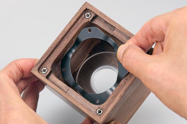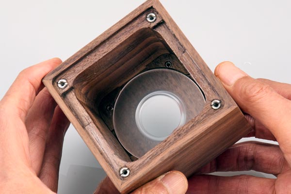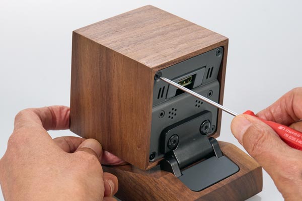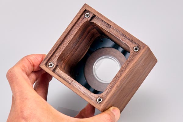 無垢の木材から削り出し、カメラ機器にありがちな無機質な見た目を払拭し、インテリアになじむデザインで、どんな空間にも自然に溶け込みます。