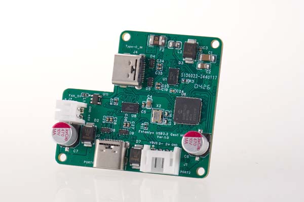 バスパワーで動作しながら、USB3・USB2・FAN電源を1枚の基板に統合。