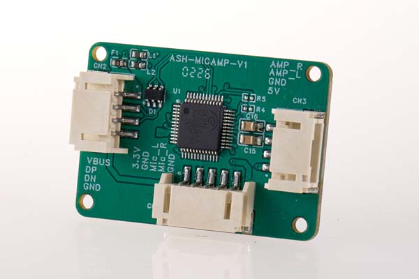 USBオーディオ、MEMSマイク、アンプを一体で構成できる、低ノイズ・高信頼のオーディオモジュールです。