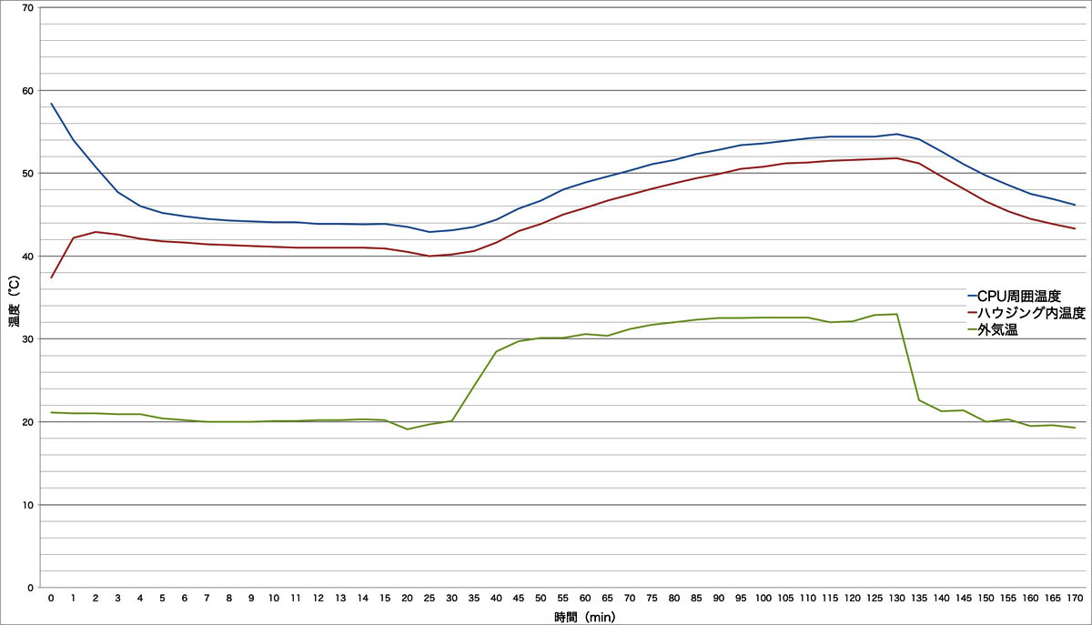 この状態からファンを回転させ、放熱効果の検証を行いました。