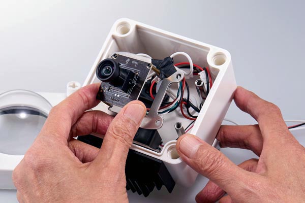 カメラハウジングにカメラを格納し、密閉型ケース用冷却システム(Entaniya Silent Mount 315)の冷却性能を評価しました。