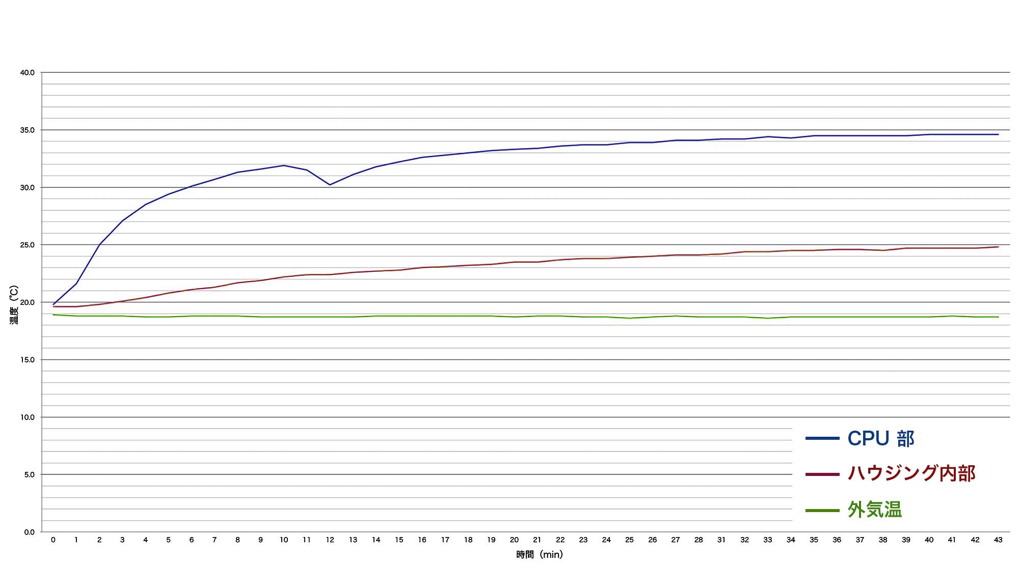 | 30℃ | 内部 36℃ / CPU 39℃ | 内部 37〜40℃ / CPU 42〜45℃ | 内部 40〜45℃ / CPU 45〜53℃ |