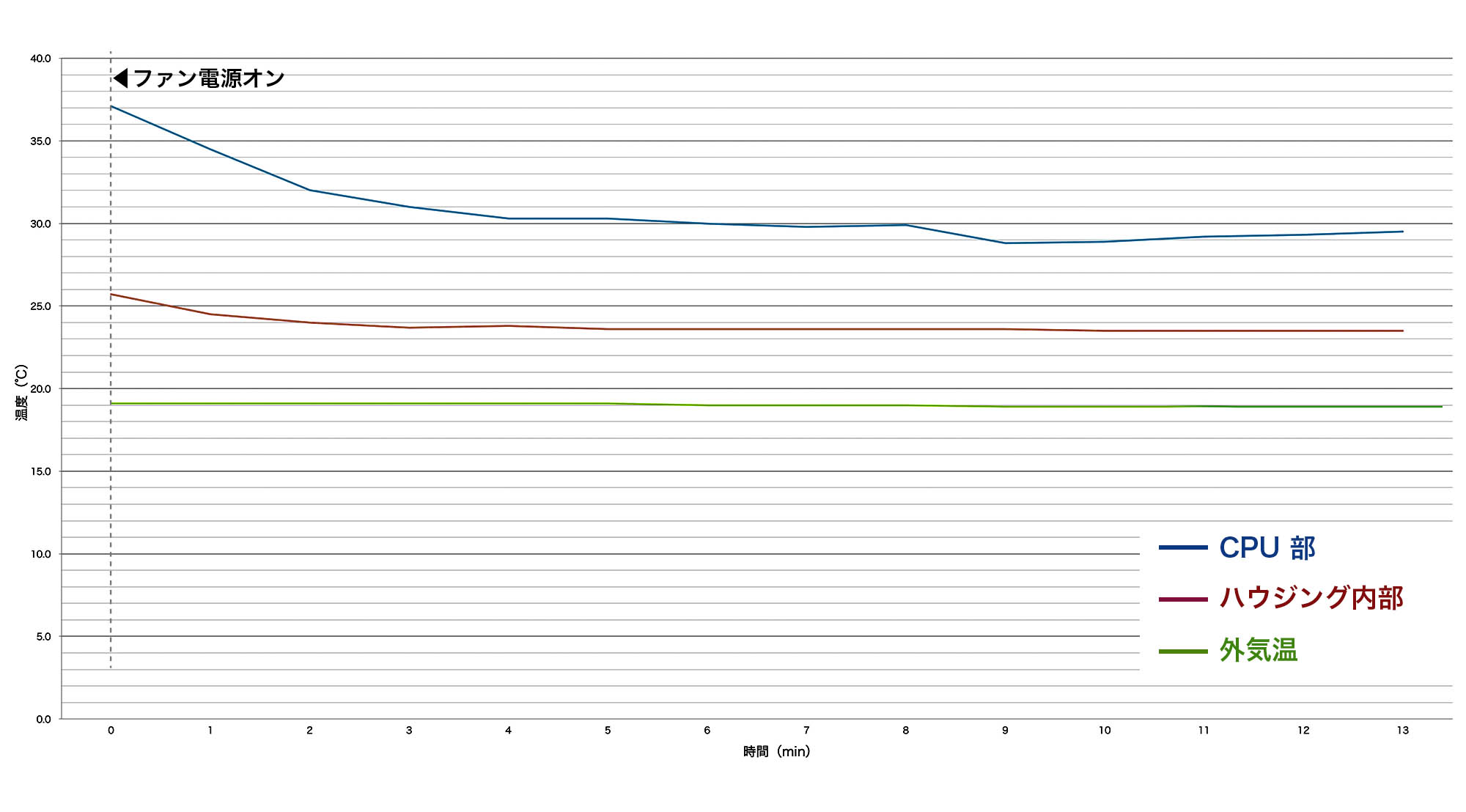 | 外気温 | ファン+ヒートシンク | ヒートシンクのみ | 自然対流のみ |