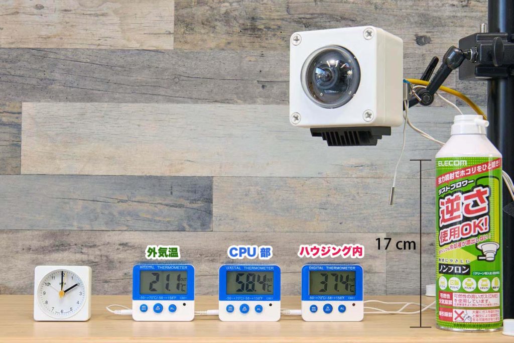 既存のPoEカメラ構成(約2.9W)と比較して発熱は大幅に小さく、同一ハウジングではハウジング内部温度差は約5.5℃前後まで低減する見込みです。