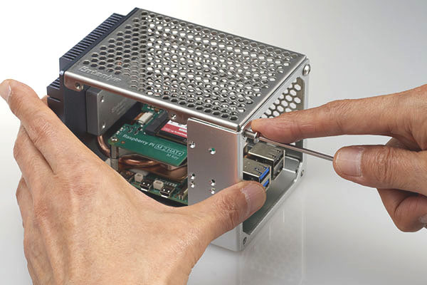 Raspberry Piにヒートパイプや冷却ファンを組み込んで使用できるだけでなく、拡張ボードなども一緒に収納可能です。USB、Ethernet、HDMIなど、必要なポートへのアクセスもスムーズで、機能性を損なうことなく、さまざまな機器を接続できます。
