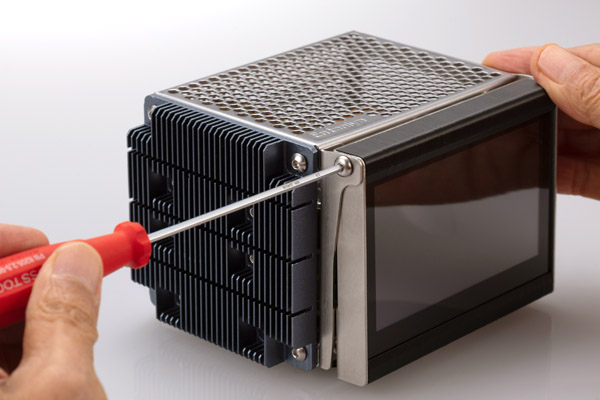 ハニカム構造による高い剛性と放熱性を確保しながら、前面モニターのフリップ可動により優れた視認性と操作性を提供します。