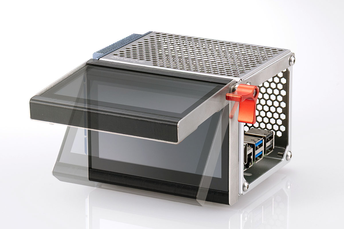 また、ディスプレイを起こすだけで Raspberry Pi 基板へ容易にアクセスできるため、メンテナンス性や拡張性にも優れています。